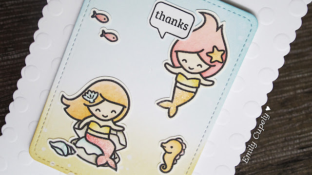 Hi guys! For today's video I made a "thank you card" perfect to give during the summer, where I used some adorable mermaids from Lawn Fawn. In the video tutorial I show you how I added some dry embossing using an stencil. Also, I show you how I colored the mermaids using my Distress Ink pads, which I submitted to the challenge from Kathy Racoosin , #TheDailyMarker30Day, through my Instagram account, @EmiCup. I will submit this card to the challenge #133 from Lawnscaping, too. I hope you enjoy the video tutorial! :)